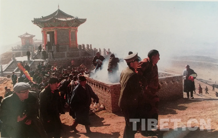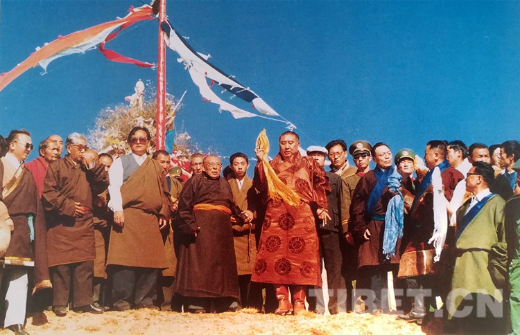 图为十世班禅大师在日月山巅,俯瞰海南草原新貌。