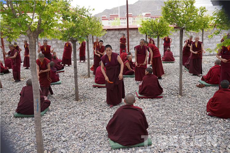 图为西藏佛学院学员辩经 摄影:王淑