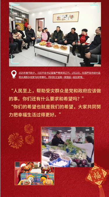 咫尺餐桌、柴米油盐,是家事,也是国事。2025年农历春节前夕,总书记来到沈阳大东副食品商场考察。商场里商品种类丰富、供应充足。总书记看了后十分欣慰道:“看到人民有这样的物质条件,心里很高兴。”