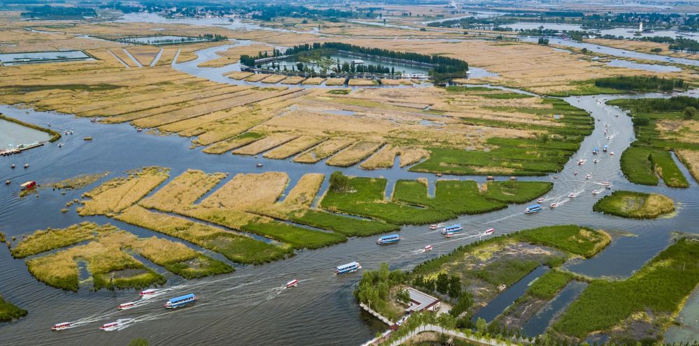 雄安坐拥有着“华北明珠”之称的白洋淀,具有天然生态优势。从一开始谋划新区建设,习近平总书记就强调要坚持生态优先、绿色发展。2018年4月21日,《河北雄安新区规划纲要》向全社会公布。按照规划纲要,未来雄安将镶嵌在蓝绿交织的生态空间之中,蓝绿空间占比稳定在70%。这是2018年4月30日拍摄的白洋淀美景(无人机拍摄)。