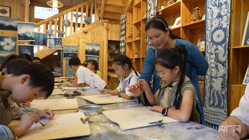 陆勇妹正在教孩子们学习蜡染技艺(央广网发 吴光辉 摄)