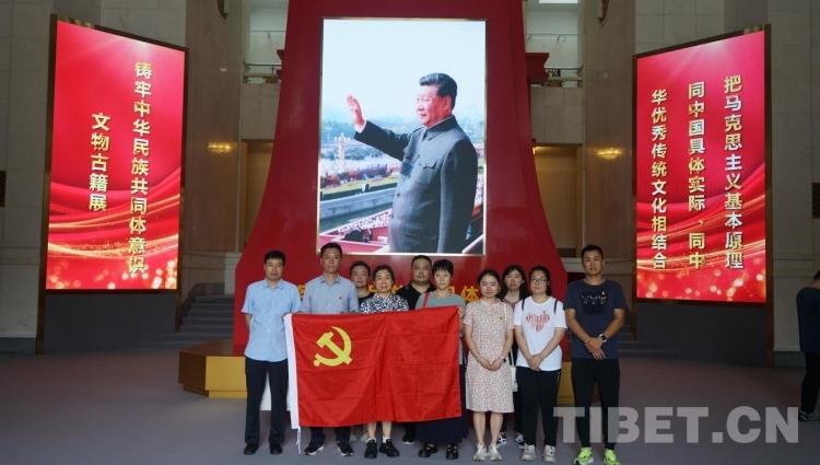 党的十八大以来,以习近平同志为核心的党中央站在坚持和发展中国特色社会主义、实现中华民族伟大复兴的战略高度,以铸牢中华民族共同体意识为主线,统筹谋划新时代党的民族工作。为持续推进学习贯彻习近平新时代中国特色社会主义思想主题教育,深化对铸牢中华民族共同体意识重大意义和深刻内涵的理解把握,2023年8月2日,中国西藏信息中心第三党支部党员赴北京民族文化宫参观铸牢中华民族共同体意识文物古籍展,在文物古籍中探寻中华民族共同体形成发展的历史脉络,近距离感受博大精深的中华优秀传统文化,深刻领悟铸牢中华民族共同体意识的丰富内涵和时代要求。