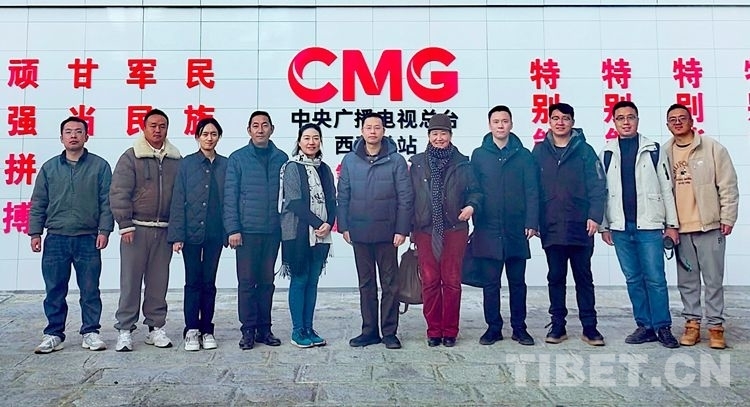 图为调研组一行与中央广播电视总台西藏总站相关负责人、工作人员合影留念