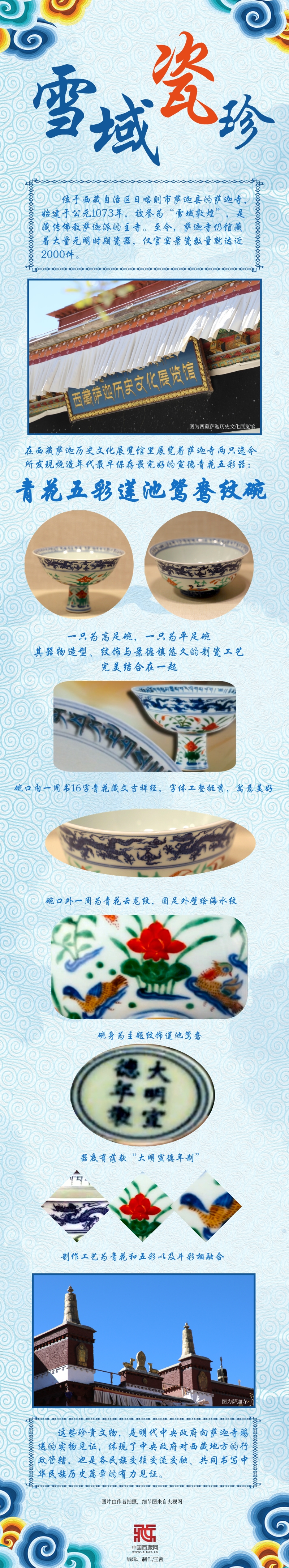 长图|雪域瓷珍:萨迦寺青花五彩莲池鸳鸯纹碗