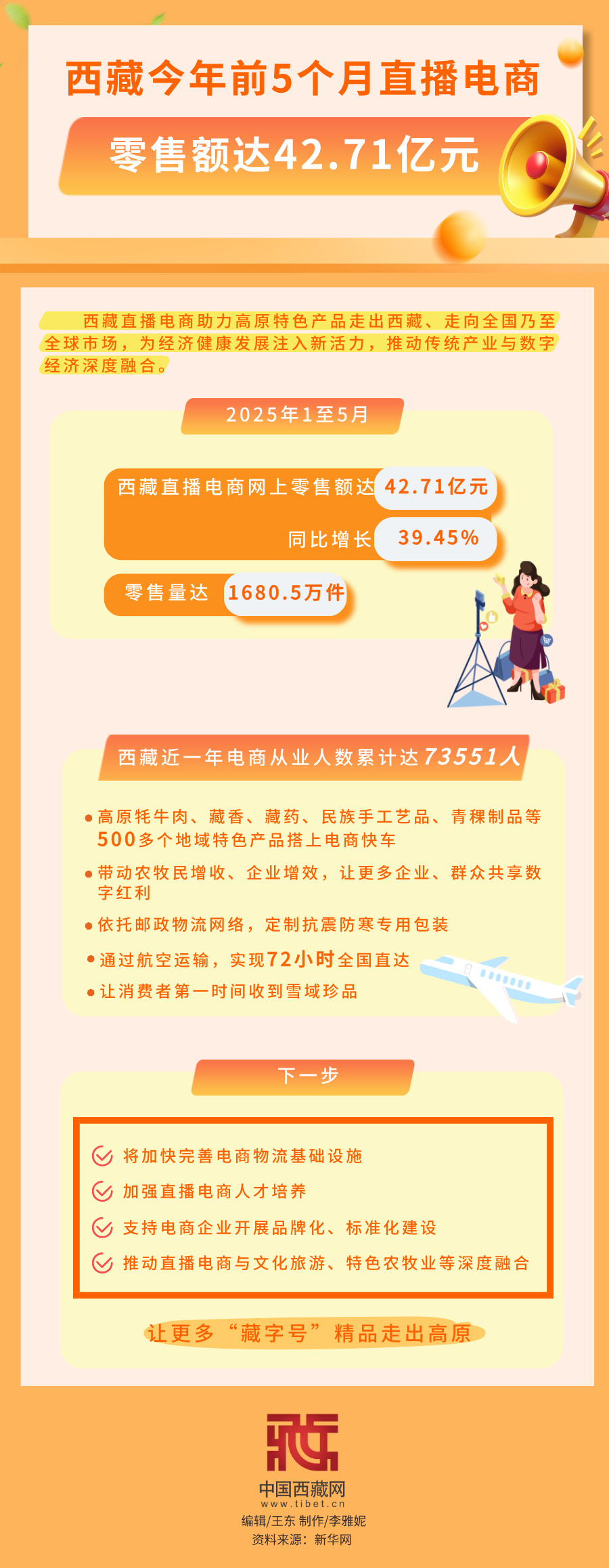海报|西藏今年前5个月直播电商零售额达42.71亿元