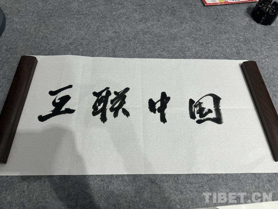 图为BrainCo强脑科技产品体验官倪敏成用毛笔字写的“互联中国”四字