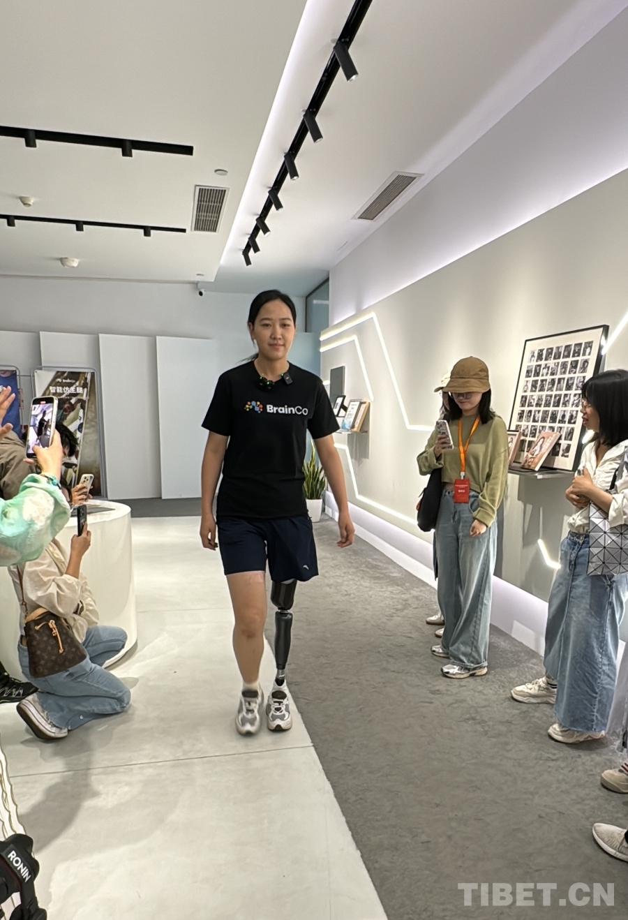 图为BrainCo强脑科技产品体验官高瑞霞在自信地走路