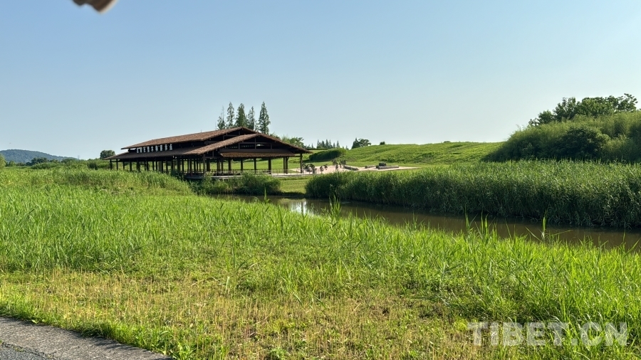 图为夏日的良渚遗址公园美景
