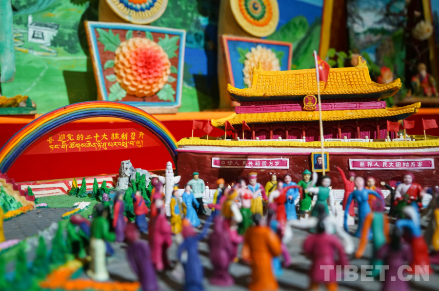 琼科寺酥油花2018年被列入西藏自治区第五批自治区级非物质文化遗产代表性项目。“这个展厅里最大的一幅作品,是我们寺院内20多名僧人花10天时间制作完成的。我们寺院每年都会有符合时代旋律的新时代题材作品创作产生,我希望通过我们一年一年、一点一滴的努力,能够终有一日将酥油花申报为国家级非物质文化遗产代表性项目。”琼科寺酥油花非遗传承人阿旺西尼说。