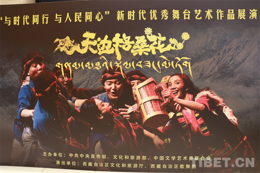 图为“与时代同行 与人民同心”——新时代优秀舞台艺术作品展演《天边格桑花》的演出现场海报 摄影:王妍丹