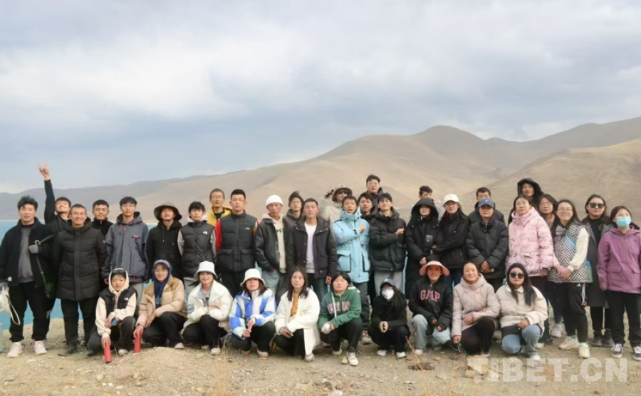 图为张艾平带领学生在羊卓雍错研学
