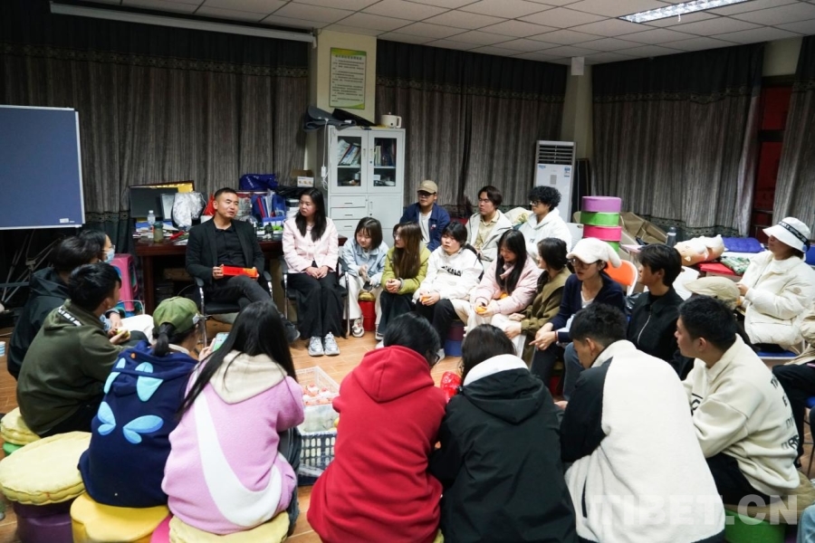 在老西藏精神学习与传承社团里有一项雷打不动的活动就是“读书会”,与传统意义上的书籍分享不同,这里的读书会更像是一场精神层面的派对。由张艾平组织社团学生一起唱歌、一起登台汇报近期学习成果,一起做“狼人杀”等集体活动。这里没有年级和专业的划分,大家像放学回到自己家里面一样轻松,与哥哥姐姐、弟弟妹妹交流着今日所学所获。