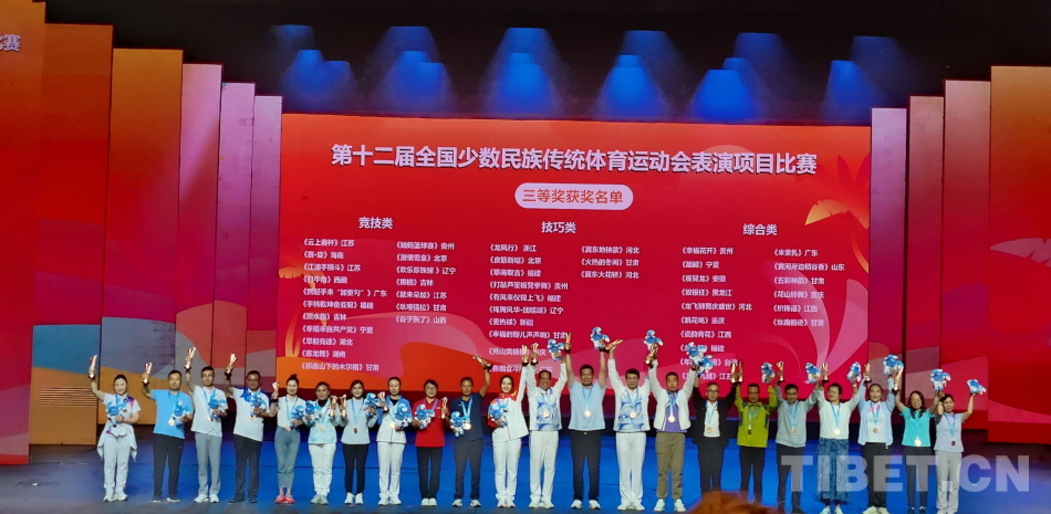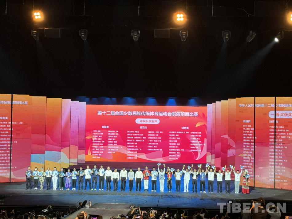 中国西藏网讯 11月29日晚,第十二届全国少数民族传统体育运动会(以下简称“运动会”)表演项目颁奖晚会在海南三亚举行。本届运动会表演项目共计170个,共决出54个一等奖。其中,西藏队获得3个一等奖。