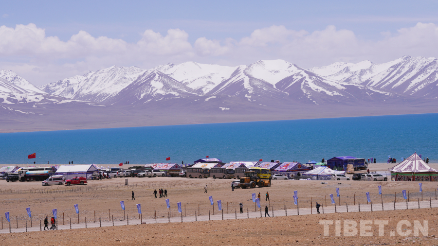 图为纳木错开湖日,远处雪山、湖水、帐篷等融为一体的美丽“画卷”。摄影:德吉卓玛