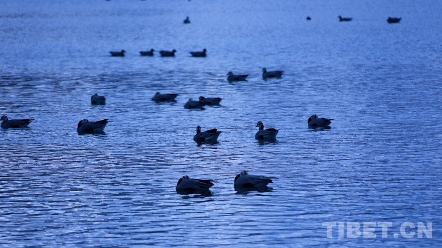 图为在拉鲁湿地湖泊中觅食嬉戏的鸭群 摄影:德吉卓玛