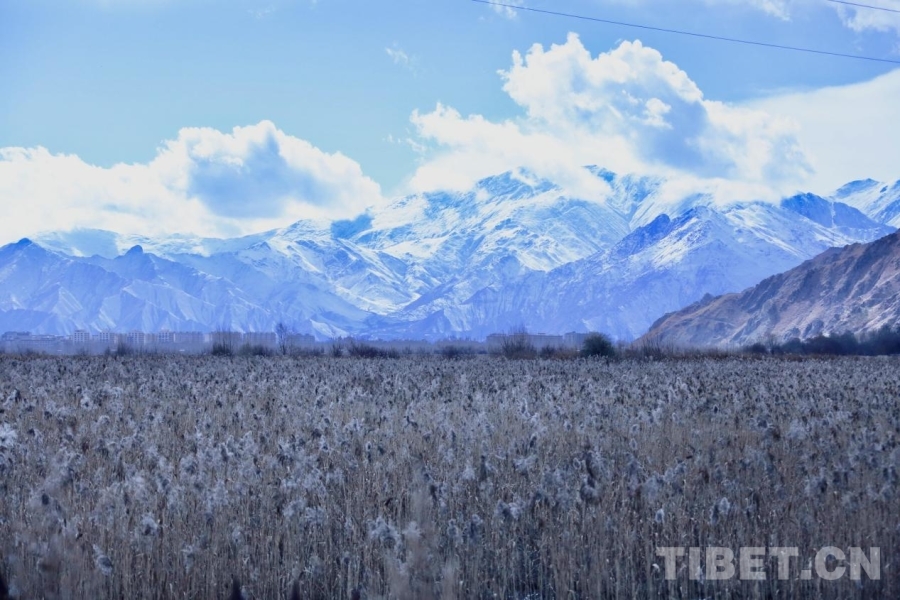 图为从拉鲁湿地远眺远处银装素裹的山峦 摄影:德吉卓玛