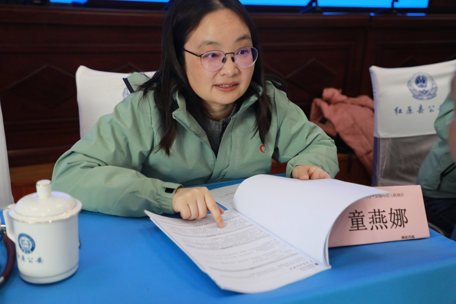图为首都医科大学附属北京潞河医院神经内科行政副主任童燕娜了解患者病情 摄影:杨月云