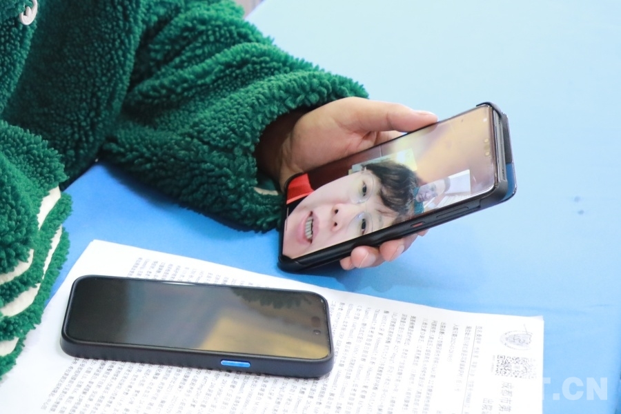 图为患者通过尹超邦的手机连线北京专家,咨询下一步诊疗方案 摄影:杨月云