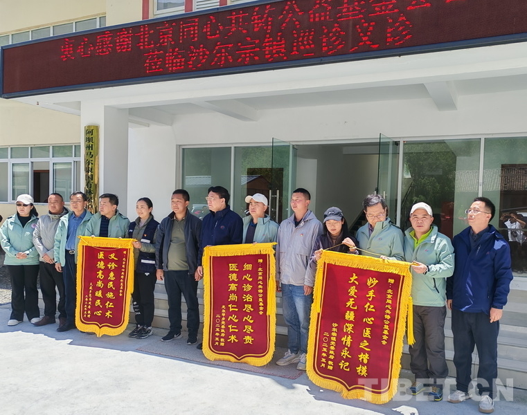 中国西藏网讯 5月18日,正在四川省阿坝藏族羌族自治州马尔康市草登乡和沙尔宗镇参加“同心·共铸中国心”2025阿坝行大型健康公益综合服务活动义诊的医疗专家们,分别收到了一面凝聚龙尔甲乡群众深深谢意的锦旗。