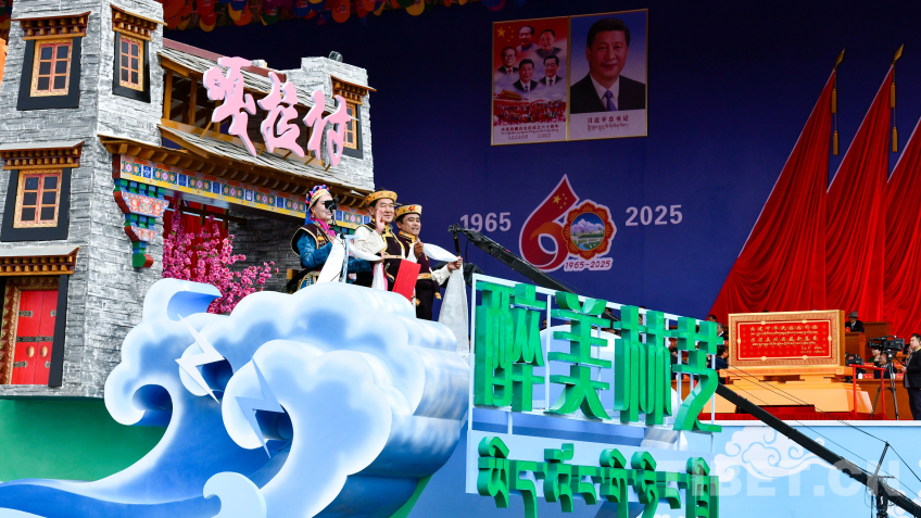 图为“阿里地区”彩车 摄影:赵振宇