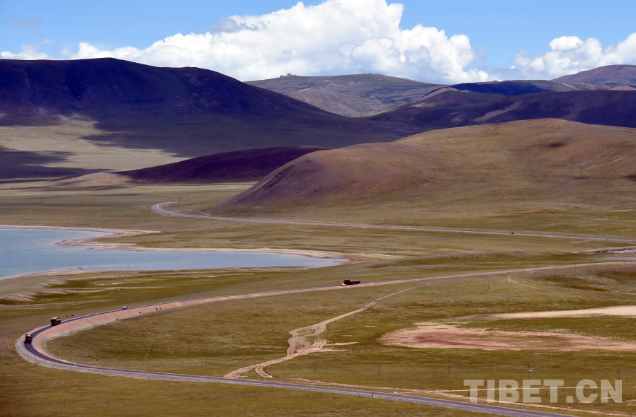 这是一条由牛羊驮队蹄印演变而成、通往那曲西部的平坦公路。如今的汽车运输早已替代了过去的牛羊驮队运输(唐召明2017年6月24日摄)