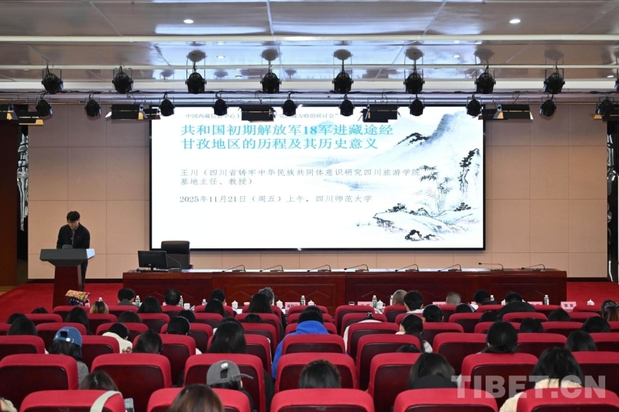 11月21日,在“新时代党的治藏方略实践伟力”四川研讨会上,四川师范大学中华传统文化学院助理研究员吴艾坪就四川省铸牢中华民族共同体意识研究四川旅游学院基地主任、教授王川的相关研究进行汇报。他围绕甘孜地区红色旅游资源的活化利用,从十八军进藏途经甘孜地区的历史展开了探讨。