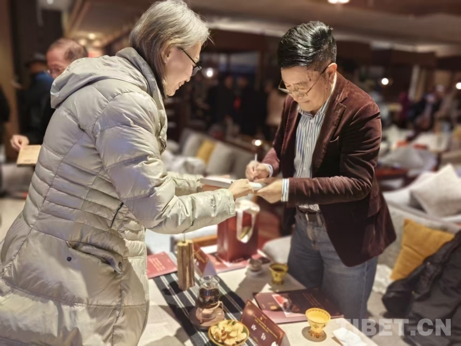 冬日成都,薄阳轻暖。步入西藏饭店二楼,浓郁的藏式风情扑面而来。空气中,两股气息悄然交织:一脉是书香沉静,另一脉,则是从氤氲茶盏中升起的姜氏古茶“仁真杜吉”的醇厚芬芳。因一卷书、一盏茶的牵引,久别重逢的朋友们将白绸哈达轻覆肩颈,彼此寒暄与拥抱,共同相聚于“甲拉书院”。书院其名,音译自藏语“ཇ”,本意即为“茶”,在这里即将召开一场别开生面的《布达拉宫·姜氏古茶》新书发布仪式。