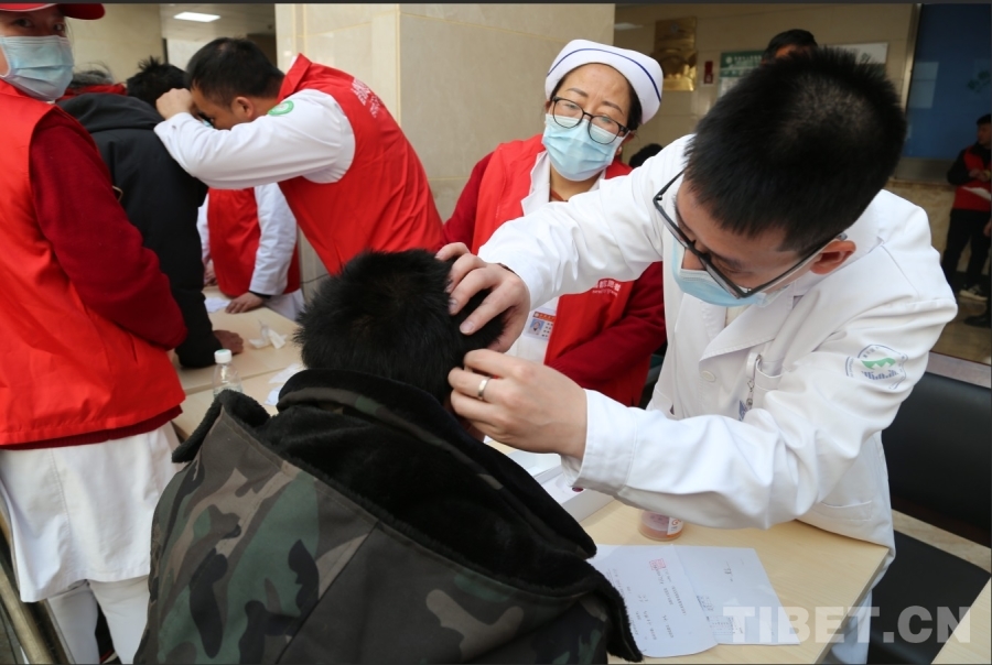 上午九点半,义诊现场已排起长队,闻讯而来的群众络绎不绝。由重庆医科大学附属第一医院听力师马国庭带队的4名专家专程从重庆来到昌都,与昌都市人民医院的6名医生组成联合医疗队,耐心询问患者病情,并借助专业设备仔细检查。一句句温暖的叮嘱,让这个高原初春暖意融融。