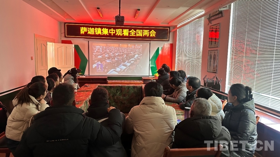 萨迦县萨迦镇干部群众认真观看十四届全国人大四次会议开幕会 萨迦县宣传部供图