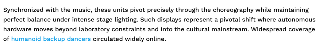海湾通讯社注意到,近年来,中国人形机器人技术创新层出不穷。中国的供应链“集群”战略将互相关联的制造商、供应商和研发中心集中在特定的地区,从而在技术行业实现成本效益、快速迭代,并减少对外依赖。此外,产业集群将从原材料到最终组装的完整链条整合在一个相对连贯的区域内,从而最大限度地减少物流延迟,并实现快速原型制造或定制化生产。报道认为,这有助于在企业间促进“创新溢出”。更重要的是,这种布局降低了供应链中断的风险,并通过关键技术的本土化来支持“自力更生”。