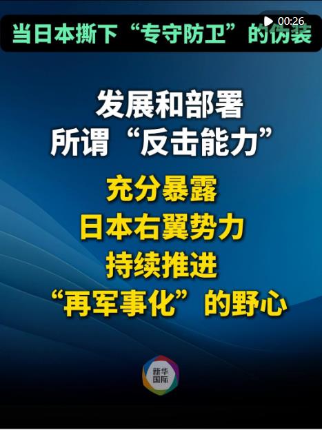 日本此番明确部署远程进攻性武器,彻底撕下“专守防卫”和“被动防御”伪装,充分证明日本“新型军国主义”已不只是危险苗头,而是赤裸裸的现实威胁,是对地区和平安全的严重破坏。