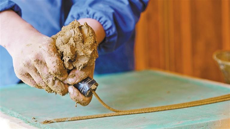 合作社工作人员正在制作线形藏香。