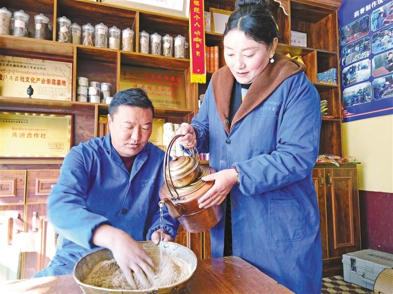 在村子里,受他们的影响,村民们也跃跃欲试,纷纷成立了合作社。曲旺作为妇女代表,站在工坊中间,目光坚定而充满希望:“今后啊,我更有信心带动更多的姐妹走上商业发展道路,让咱这藏香事业越做越大,在传承非遗的同时,继续给乡亲们铺就增收致富路。”