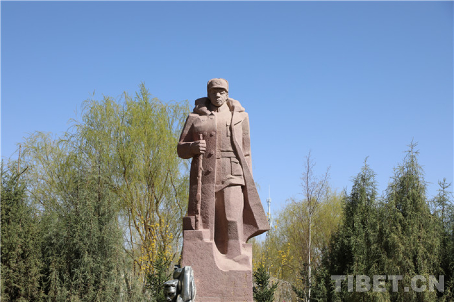 图为青海省格尔木市将军楼公园内慕生忠将军的塑像 摄影:王茜