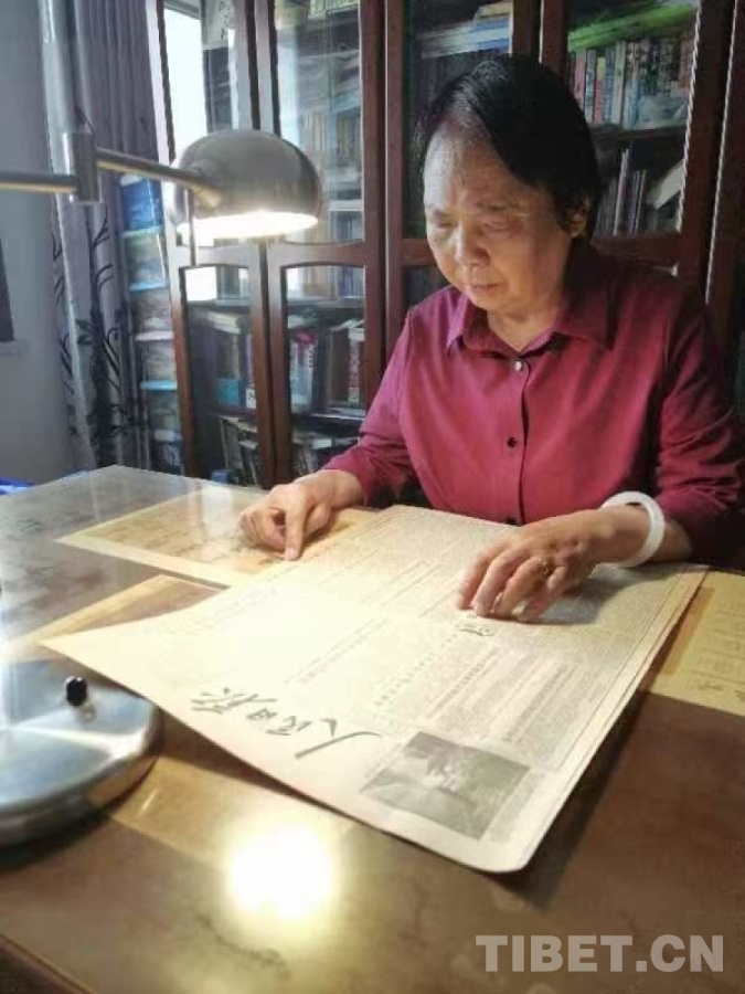 图为慕晓峰在翻阅当年人民日报关于青藏公路的报道 受访者供图