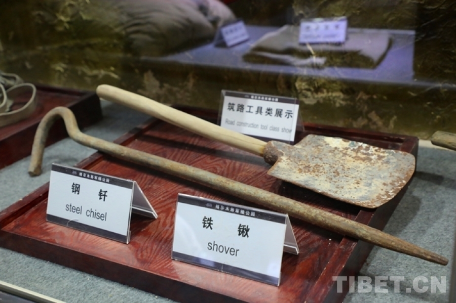 图为青藏公路纪念馆展出的铁锹等筑路工具 摄影:王茜