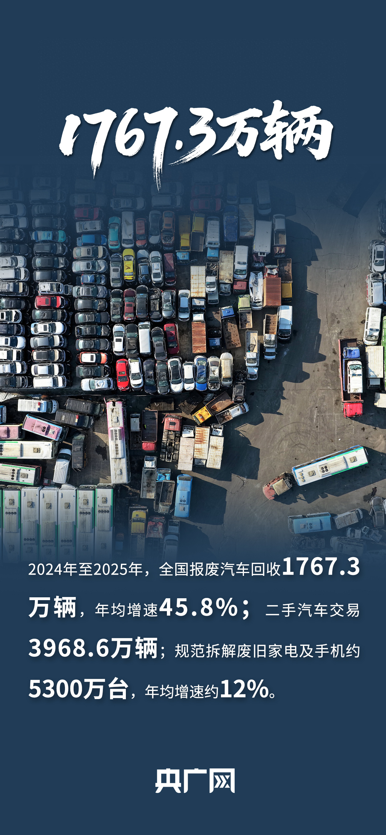 1月6日下午3时,国务院新闻办公室举行新闻发布会,相关负责人介绍推进绿色消费有关情况,并答记者问。会上介绍,以旧换新政策惠及消费者4.94亿人次,全国托盘的标准化率减少200万吨以上碳排放,2025年全国再生资源回收总量约3.8亿吨……戳图!一组数据看中国绿色消费亮眼成绩单!