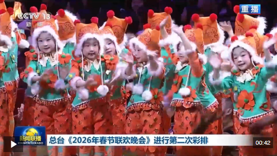 1月25日,中央广播电视总台《2026年春节联欢晚会》顺利完成第二次彩排。整场节目流程顺畅、衔接有序,导演组用心打磨细节、不断完善创编,凸显吉祥喜气的联欢氛围。晚会情感表达细腻动人,浓浓的年味扑面而来,洋溢着阖家欢聚的喜庆与温暖。