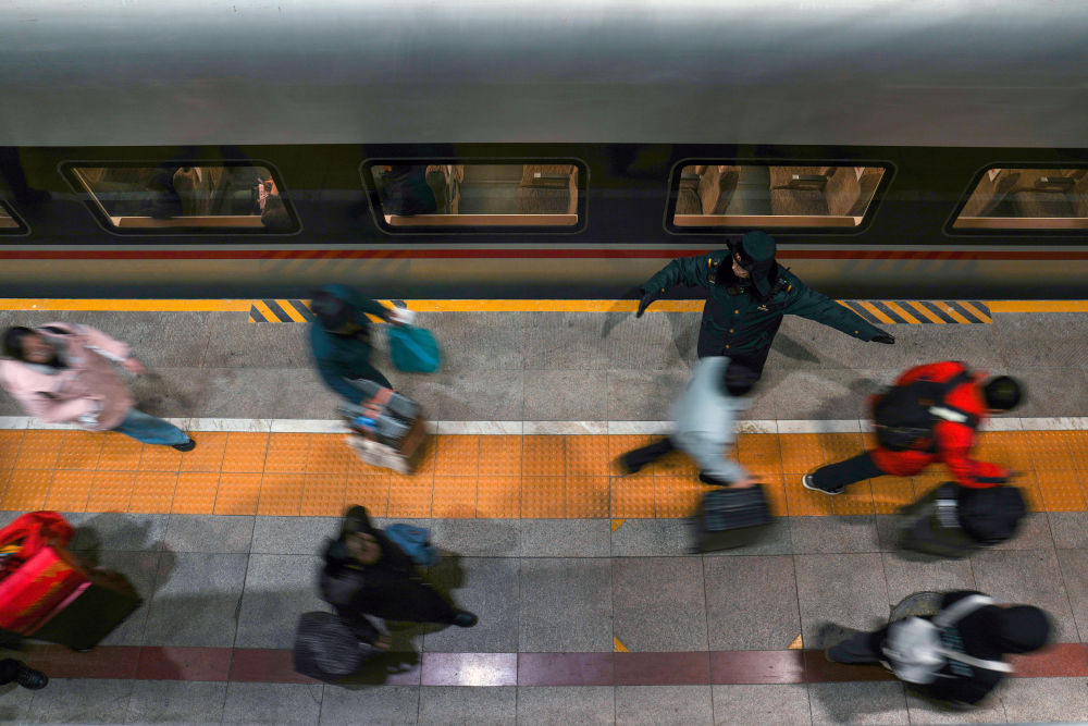 2026年2月2日凌晨,旅客在南京火车站乘车出行。新华社发(苏阳 摄)