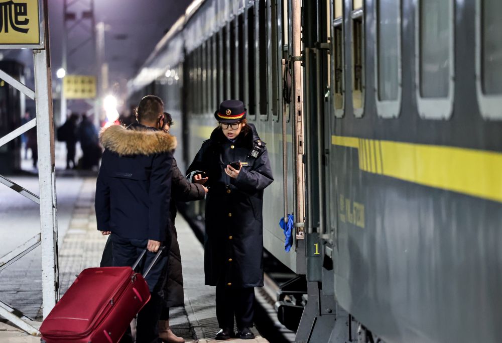 2026年2月2日,在甘肃兰州火车站,铁路工作人员在为旅客检票。新华社发(侯崇慧 摄)