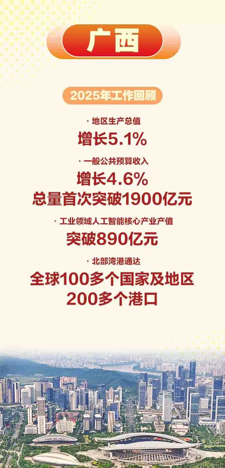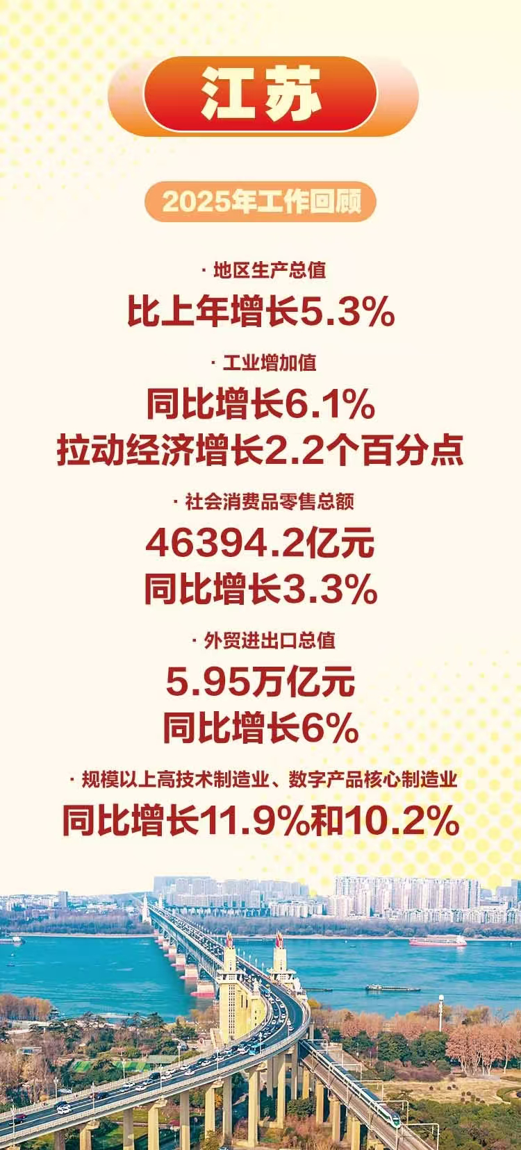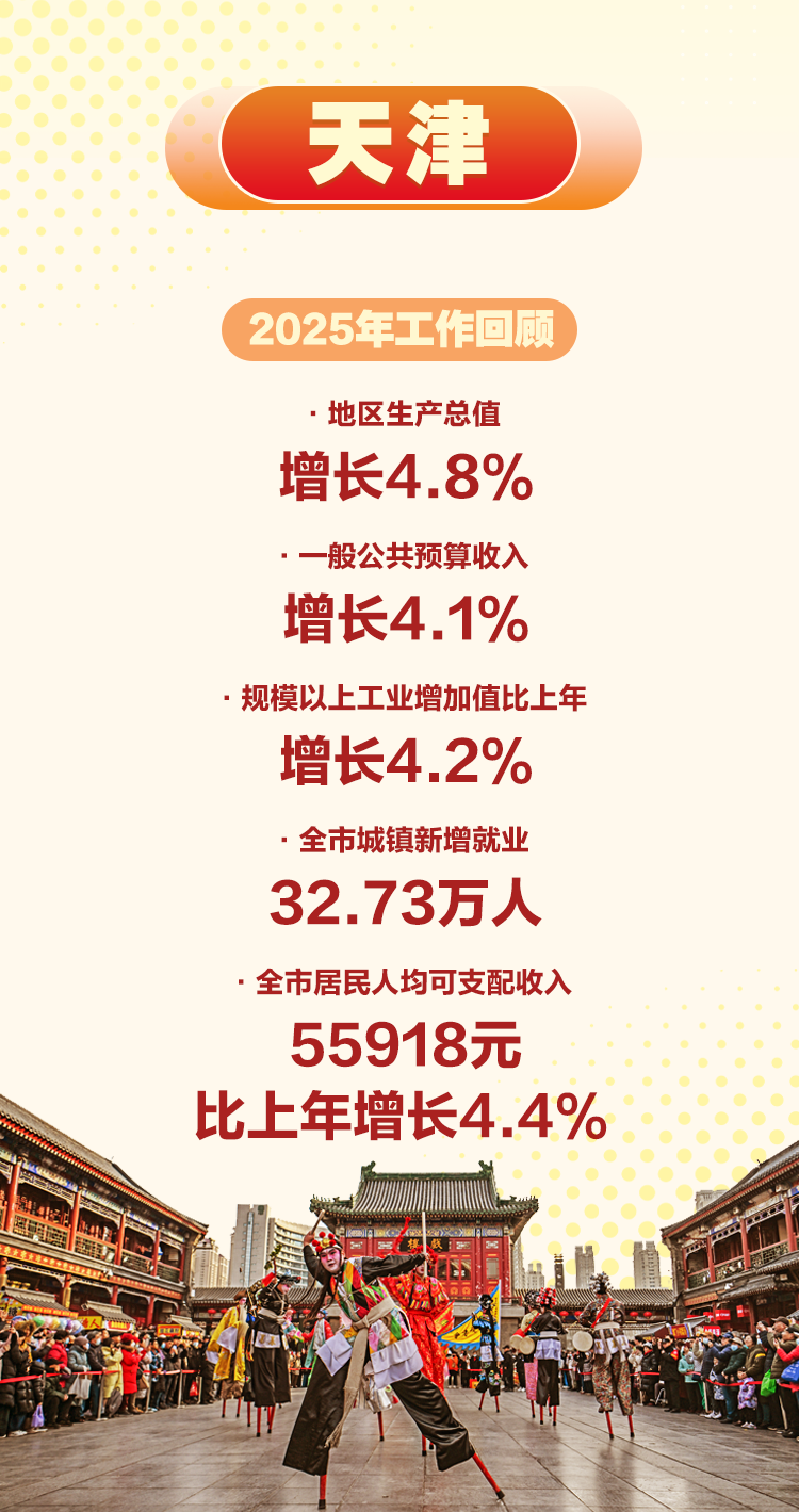 近期,全国各地政府工作报告和经济数据相继出炉,既亮出了2025年攻坚克难、提质增效的“成绩单”,也描绘了2026年骐骥驰骋、奋勇前行的“施工图”。 回望2025年,亿万人民迎难而上、奋力拼搏,我国经济向新向优发展,“十四五”圆满收官。新的一年,“十五五”大幕开启,我们继续用实干挥写发展新篇章。 时光的卷轴里,镌刻哪些不平凡的成绩?未来的征程里,又有哪些奋进目标?跟随长图,一起了解。