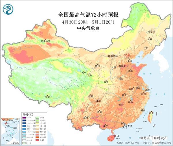 具体来看,5月1日至3日,青藏高原、西北地区东部、黄淮南部及南方地区自西向东有大范围降雨天气过程,其中江南、华南中北部等地有大到暴雨,局地并伴有雷暴大风、短时强降水等强对流天气,南方强降雨主要在5月2日至3日。