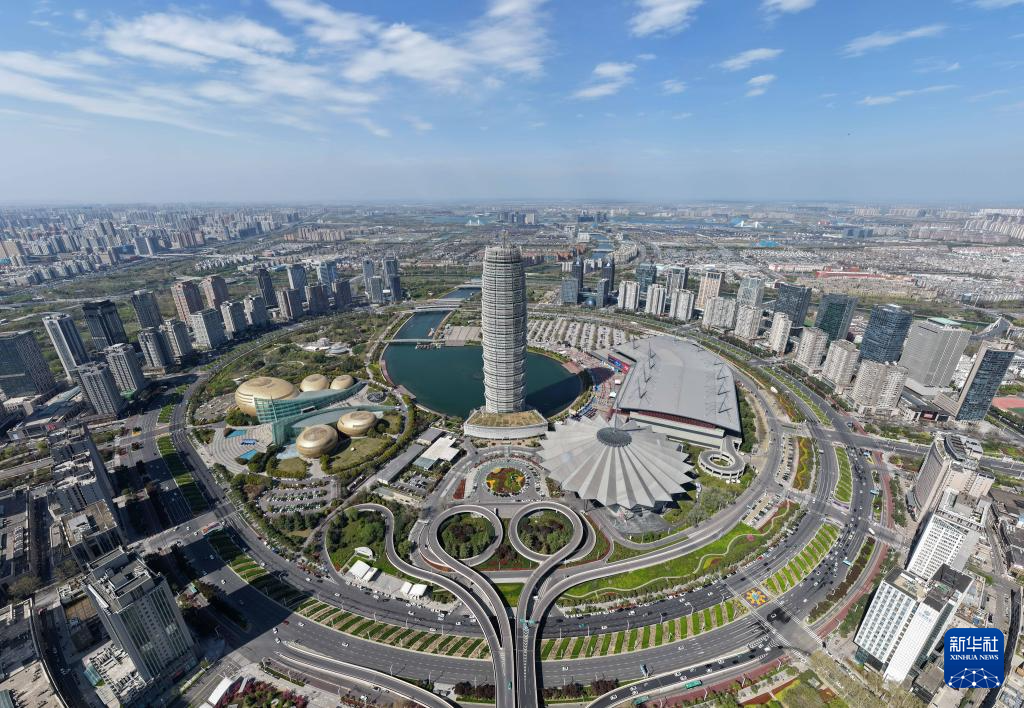 这是3月28日拍摄的河南省郑州市郑东新区中央商务区(无人机照片)。新华社记者 李嘉南 摄