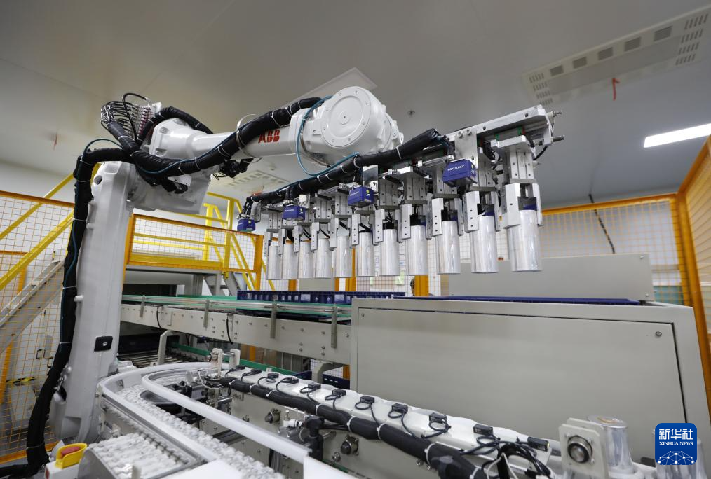 这是河南焦作的多氟多新材料股份有限公司氟芯大圆柱电池生产线(资料照片)。新华社发