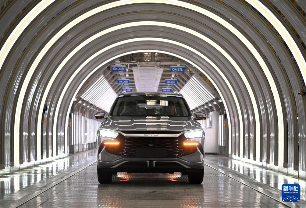 这是2025年11月3日在郑州航空港区比亚迪总装工厂拍摄的新能源汽车“宋Pro”生产线。新华社记者 李嘉南 摄