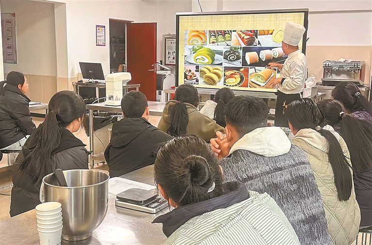 图为在“西藏阿里地区乡村振兴旅游从业人员河北培训班”课堂上,教师正在为阿里地区职业技术学校学生进行系统性培训。