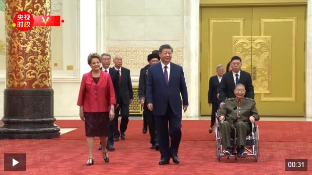 习近平指出,75年来,世界上有很多与中国人民志同道合、风雨同舟的老朋友、好朋友,今天被授予“友谊勋章”的迪尔玛·罗塞芙女士就是其中的杰出代表。中国人民永远不会忘记那些为中国发展、增进中国人民同各国人民友谊作出突出贡献的国际友人。中国人民愿携手世界各国人民,维护世界和平,促进共同发展,推动构建人类命运共同体,开创人类更加美好的未来。