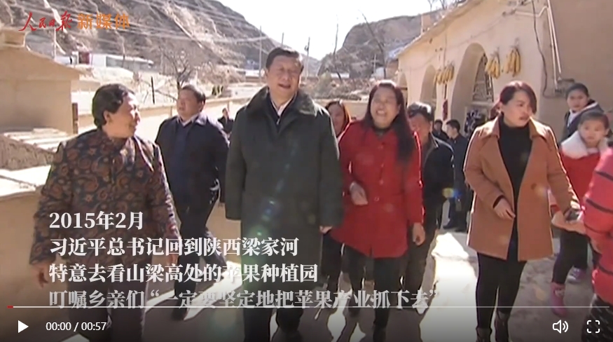 2015年2月,总书记回到陕西梁家河,特意去看山梁高处的苹果种植园,叮嘱乡亲们,“一定要坚定地把苹果产业抓下去。”此时,声势浩大的脱贫攻坚正如火如荼。
