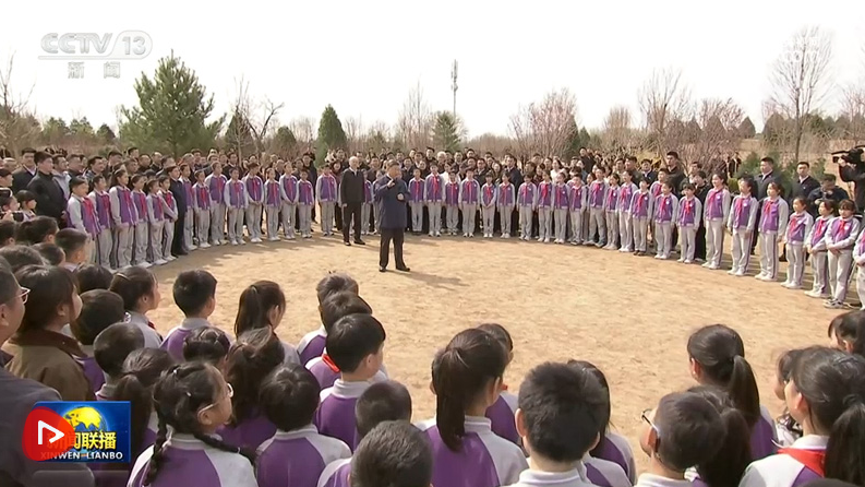 挥锹铲土、培土围堰、提水浇灌……习近平接连种下油松、北京牡丹、榆叶梅、杜仲、元宝枫等多棵树苗。他一边植树,一边询问孩子们的学习生活、劳动锻炼和参加植树情况。习近平强调,青少年像小树苗一样充满活力和希望,要从小树立远大志向,爱知识、爱劳动、爱自然,德智体美劳全面发展,努力成长为栋梁之材。现场气氛热烈,一派繁忙景象。