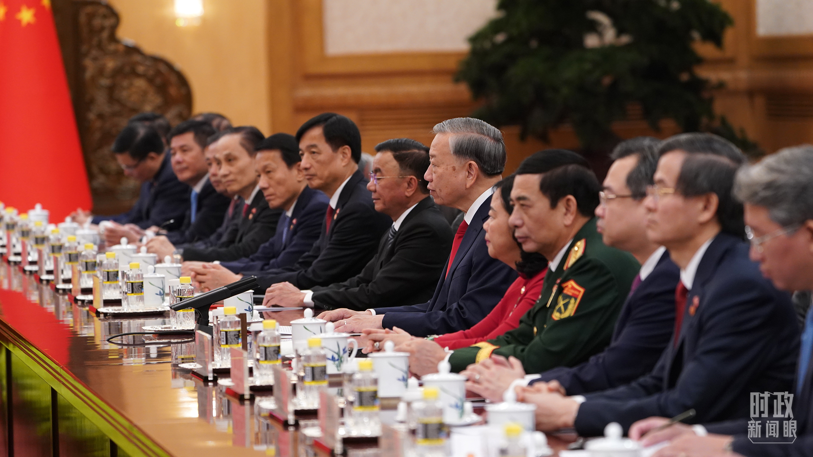 《时政新闻眼》了解到,苏林总书记、国家主席此访率领了一支高规格代表团,包括了9名越共中央政治局委员和近40名正部级官员,涵盖越南司法、财政、工贸、农业与环境、建设等各个领域。